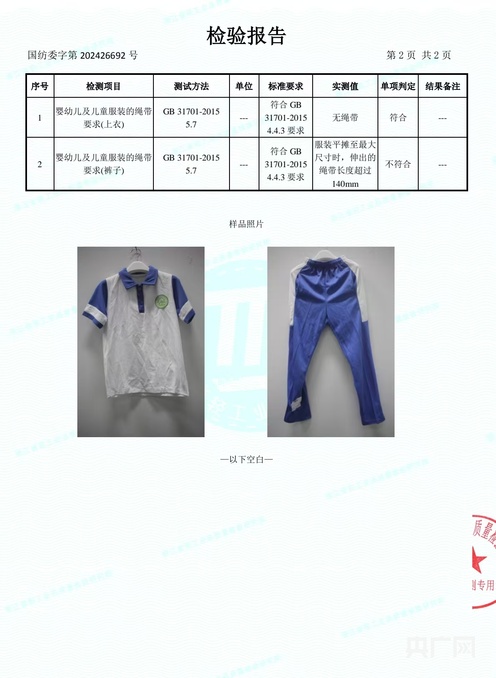 央广网呼和浩特11月12日消息(记者刘欣荣)内蒙古自治区产品质量检验研究院近日委托浙江省轻工业产品质量检验研究院国家纺织服装产品质量检验检测中心(浙江)对市场上流通的学生装进行了检测。检验报告显示,呼和浩特市区宁宁服装加工部生产的仕司奇牌学生装腰间绳带偏长,不符合国标,目前正在积极召回。